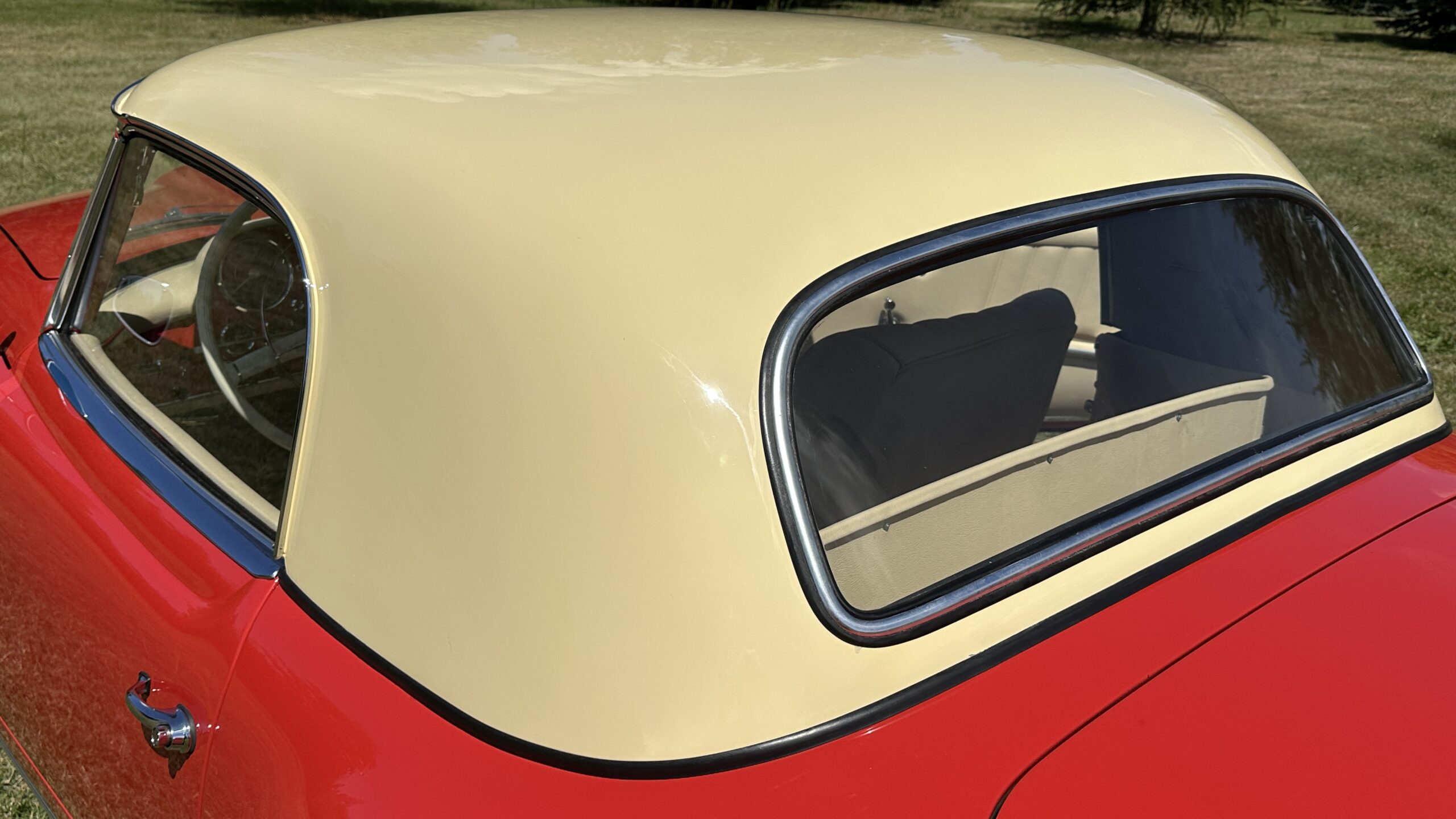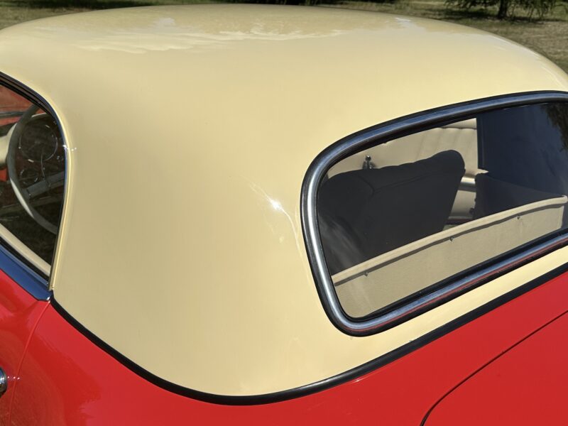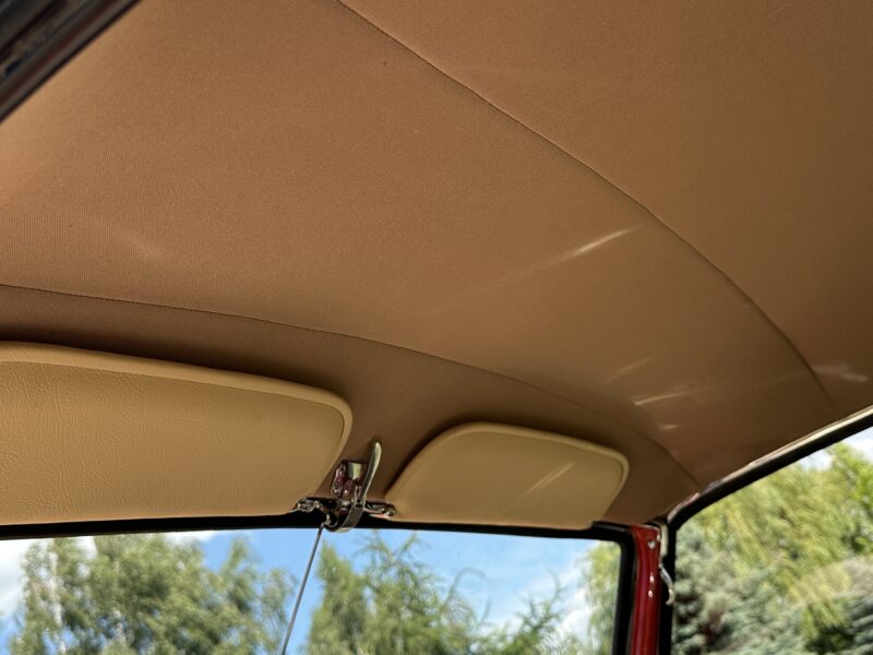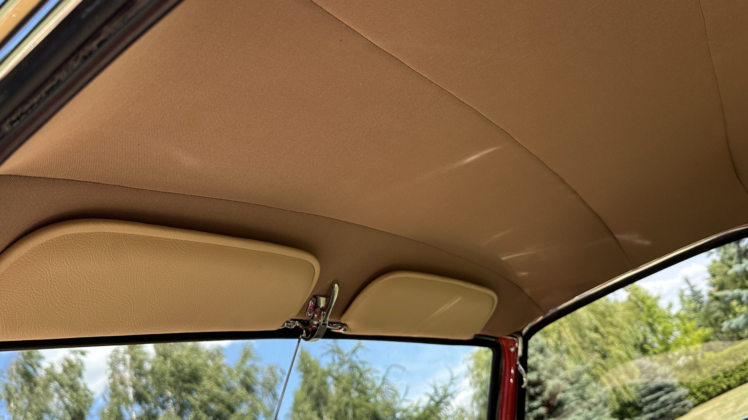 Czerwony zewnątrz, skóra kość słoniowa, beżowy dach miętki, kość słoniowa dach twardy.
