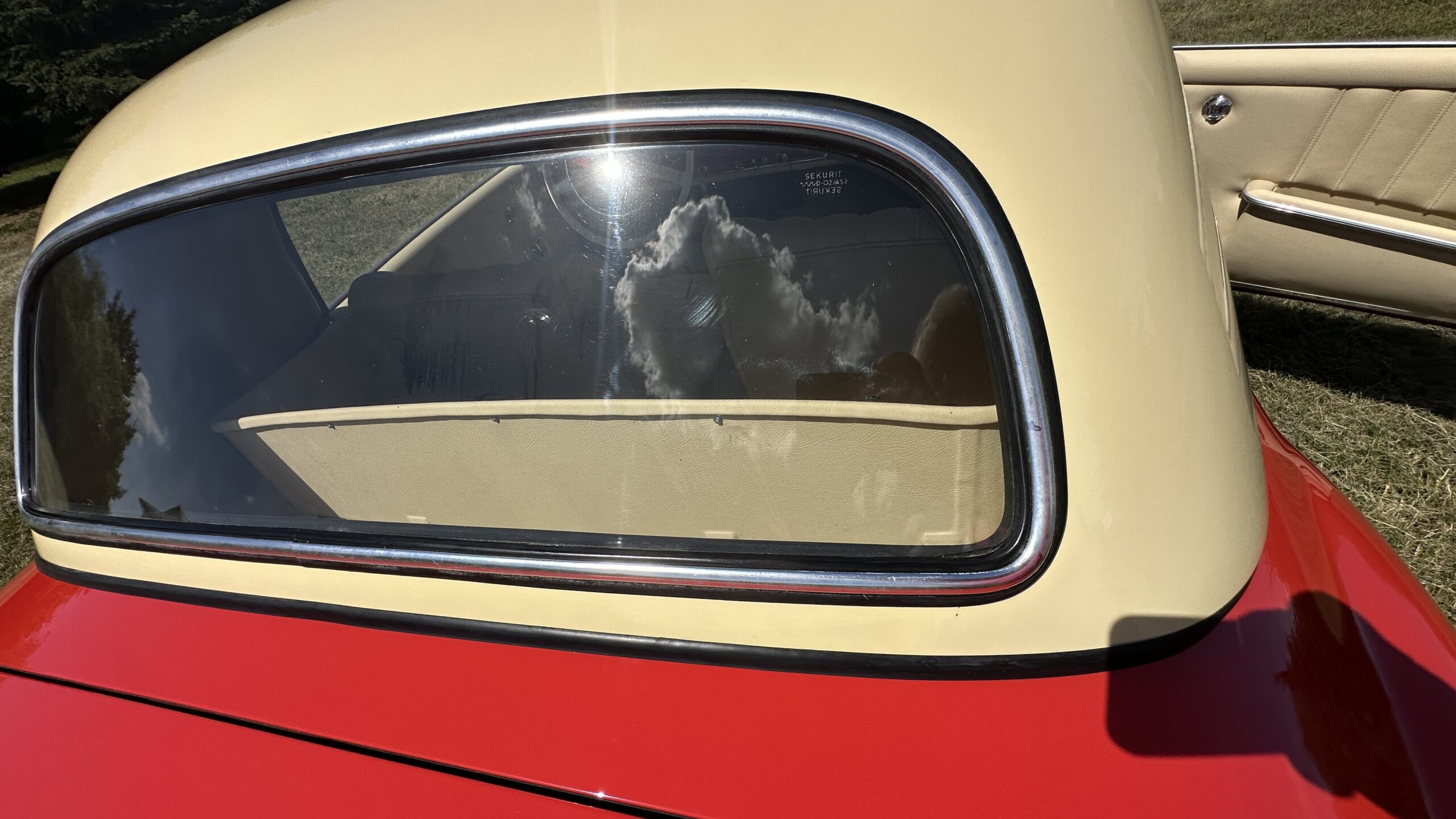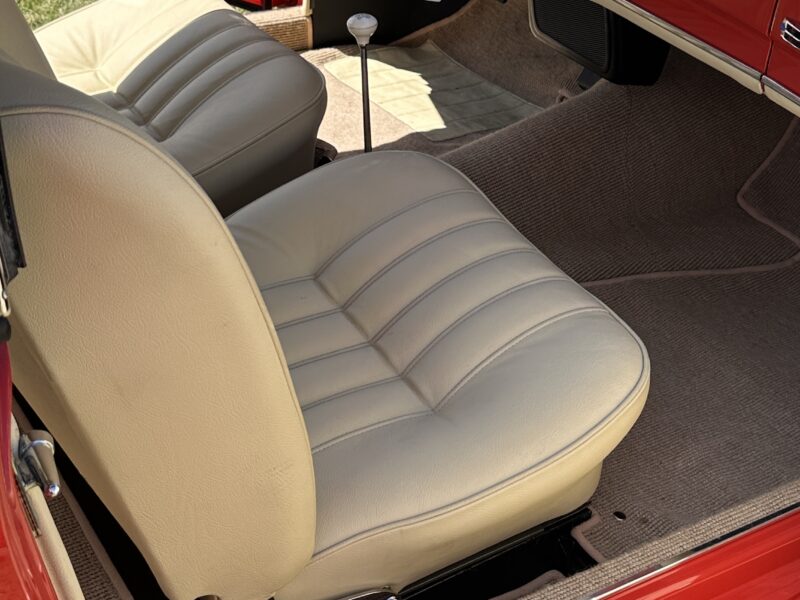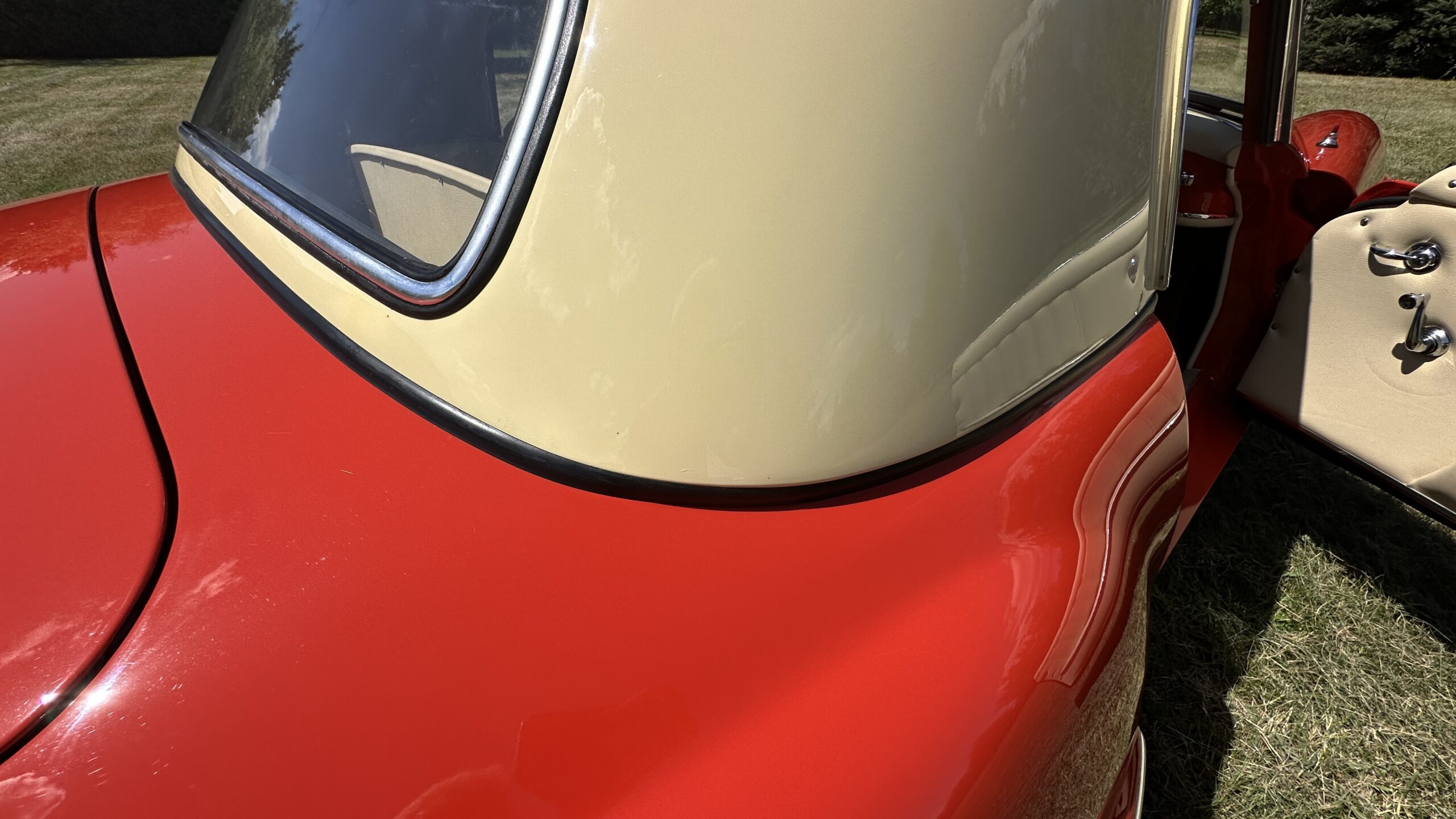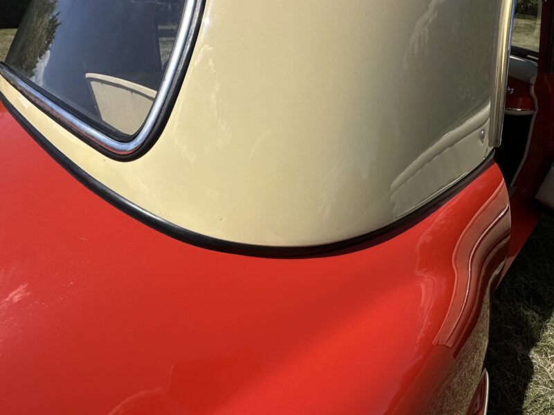 Czerwony zewnątrz, skóra kość słoniowa, beżowy dach miętki, kość słoniowa dach twardy.