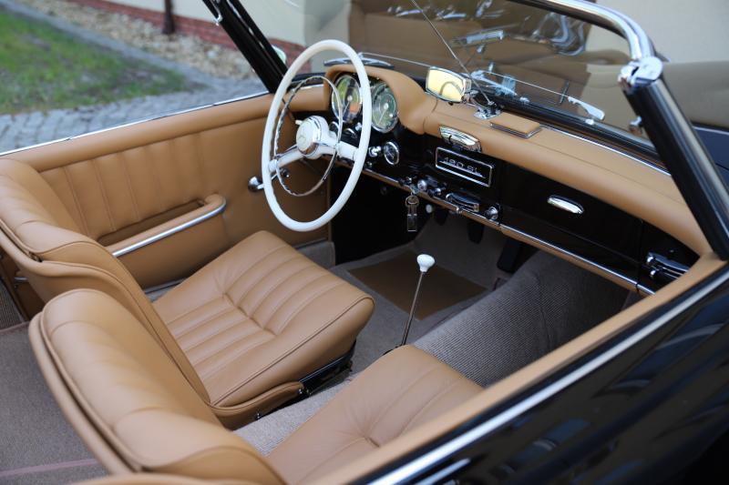Ten 1955 jest jednym z pierwszych i oryginalnych 190SL w produkcji i ma pożądane wczesne specyfikacje i wnętrze jak sportowe siedzenia typu „Gullwing”. Oryginalna czarna kolorystyka zewnętrzna jest uzupełniona czarnym kapturem z moherowym i beżowym skórzanym wnętrzem. Ten 190SL posiada obszerny plik dokumentów historycznych z opisem renowacji oraz oryginalną dokumentację z 1955 roku.