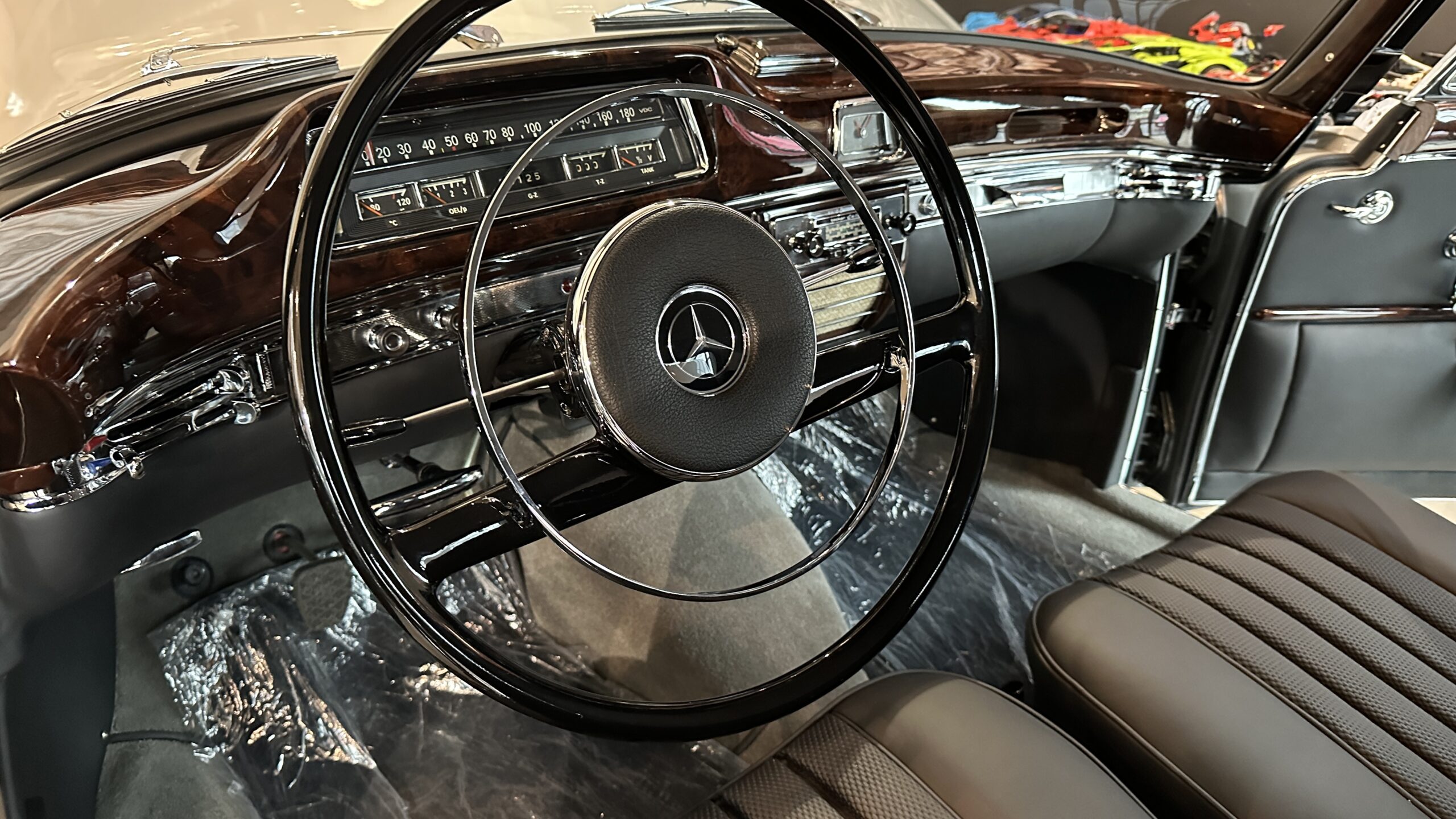 – Jeszcze dziś potrafi zostawić w tyle auta średniej klasy. Jednak większość nabywców kupowała Mercedesa nie dla jego prędkości, ale komfortu, a tym 220 SE imponuje cały czas. Siedzenia z przodu są szerokie i przyjemnie sprężyste. Na życzenie zamiast indywidualnych foteli zakładano jednolitą kanapę. Dźwignia zmiany biegów zawsze jest pod kierownicą.