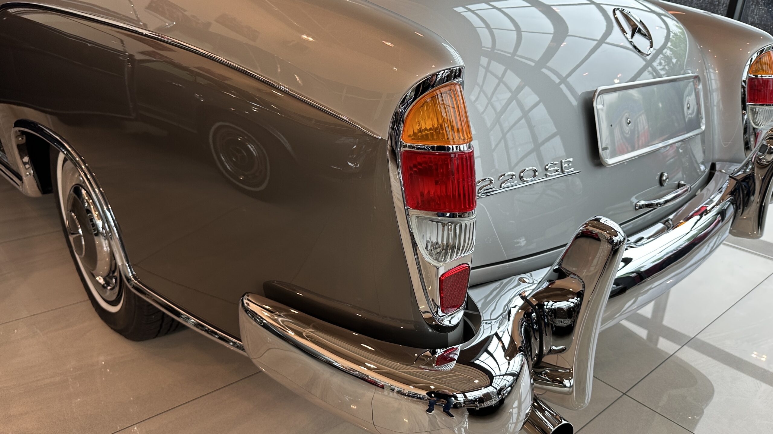 Historyczny Mercedes-Benz 220 SE z 1960 roku .Pojazd, choć pochodzi z lat 60., przypomina linię powojennych modeli, stąd został ochrzczony jako „Ponton”.