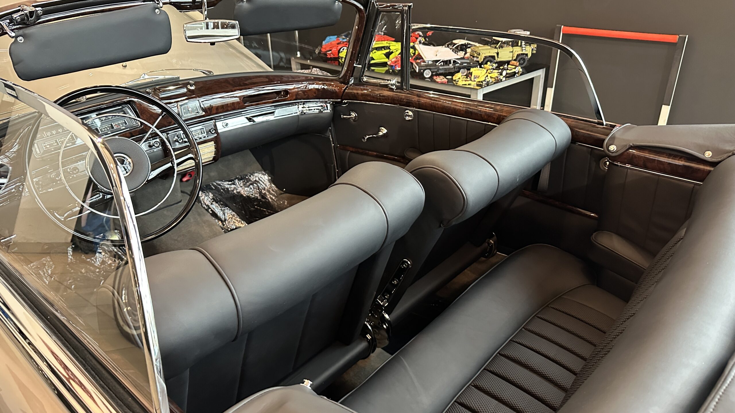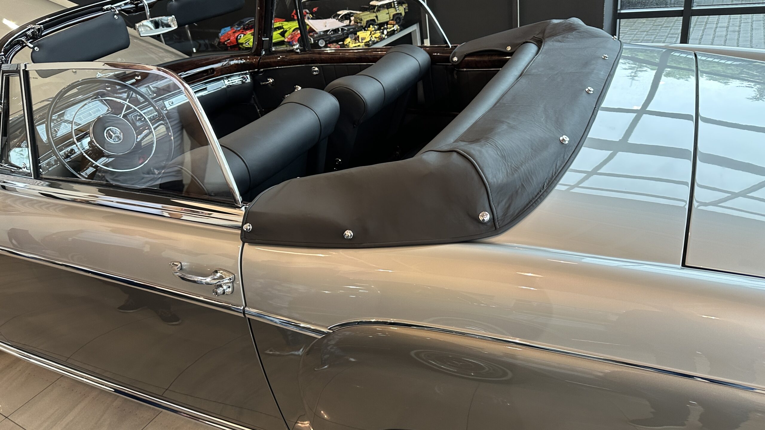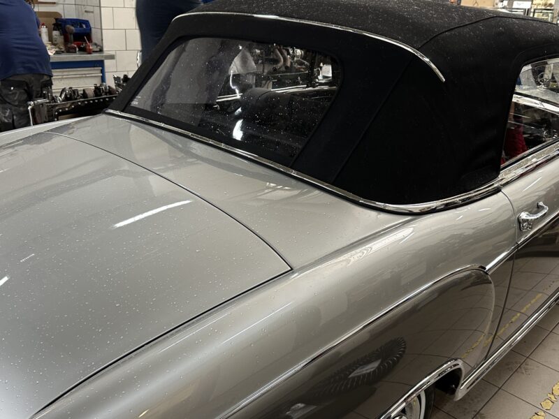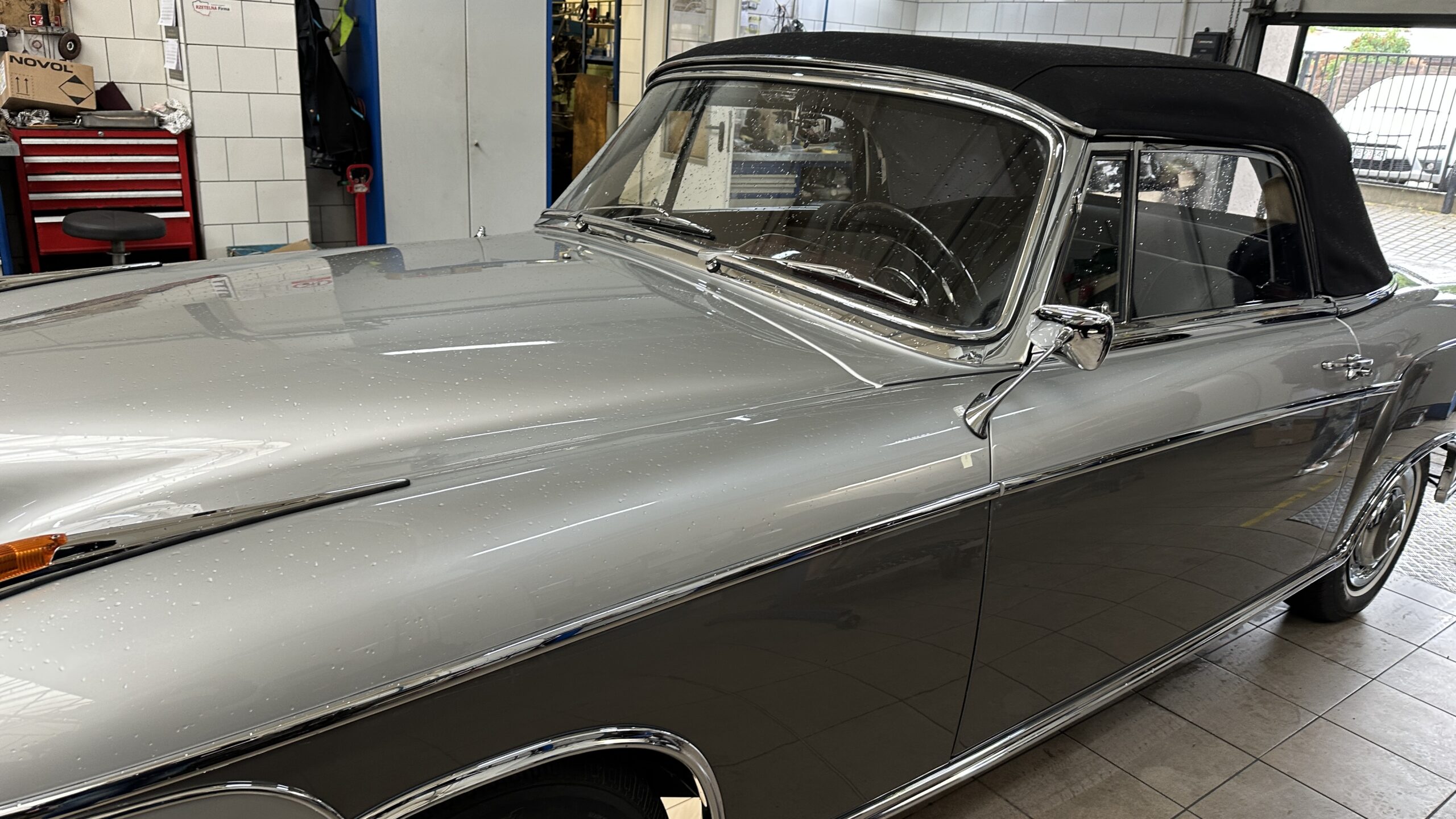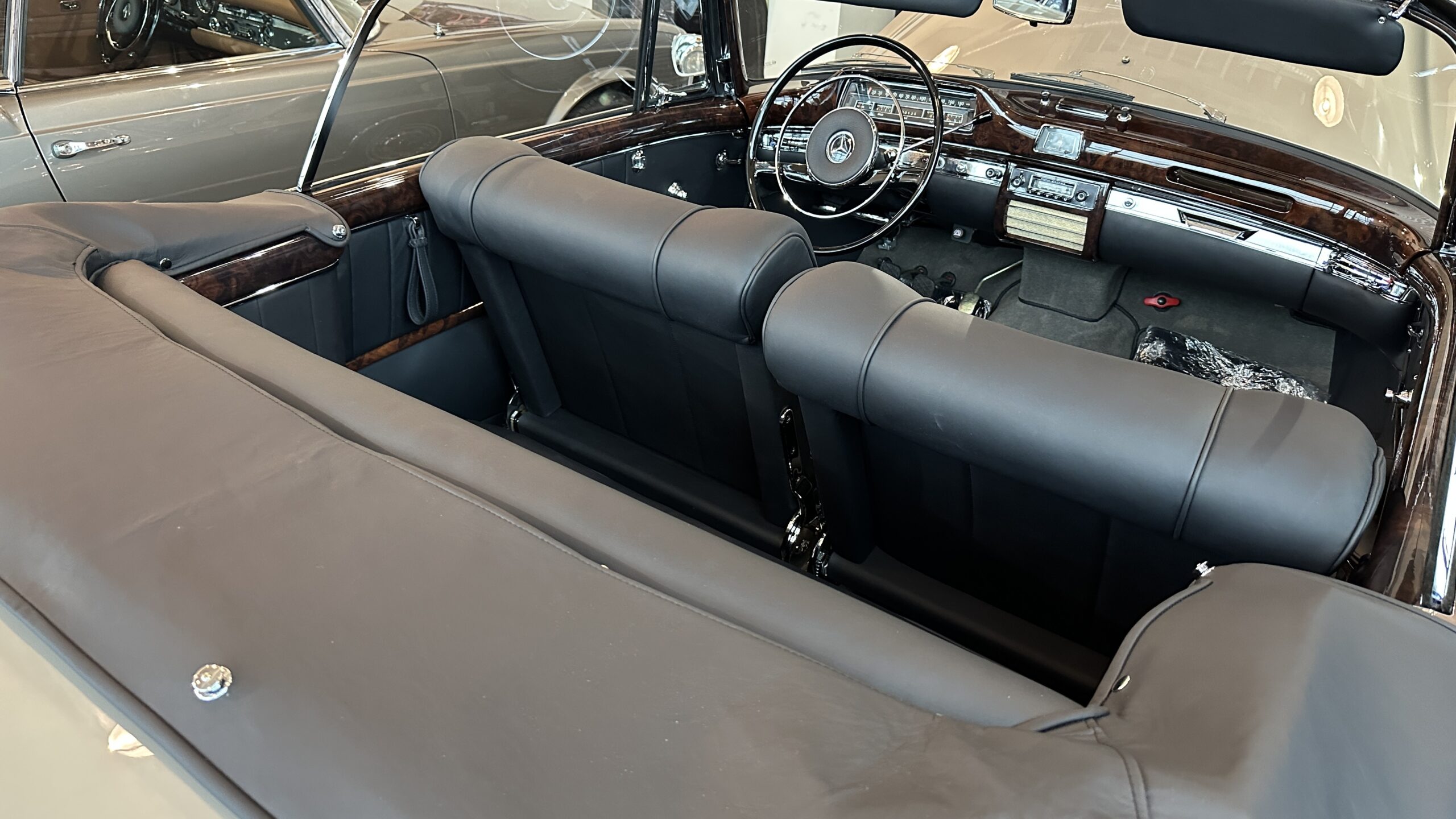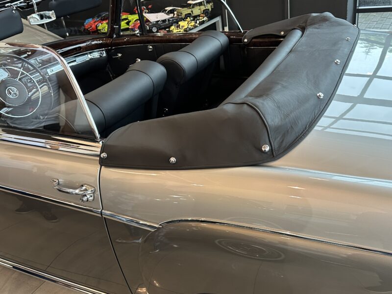 Jak na kabriolet, Mercedes 220 SE jest bardzo praktyczny. Dach jest nieduży. W dwie osoby składa się go w ciągu niecałej minuty. Po złożeniu dach jest płaski. Nie zakłóca ani linii wozu, ani przestrzeni bagażnika. Kufer jest naprawdę głęboki z nadkolami przytulonymi do boków. Koło zapasowe – zło konieczne – mieści się w nim pionowo i nie przeszkadza we wkładaniu i wyjmowaniu waliz.