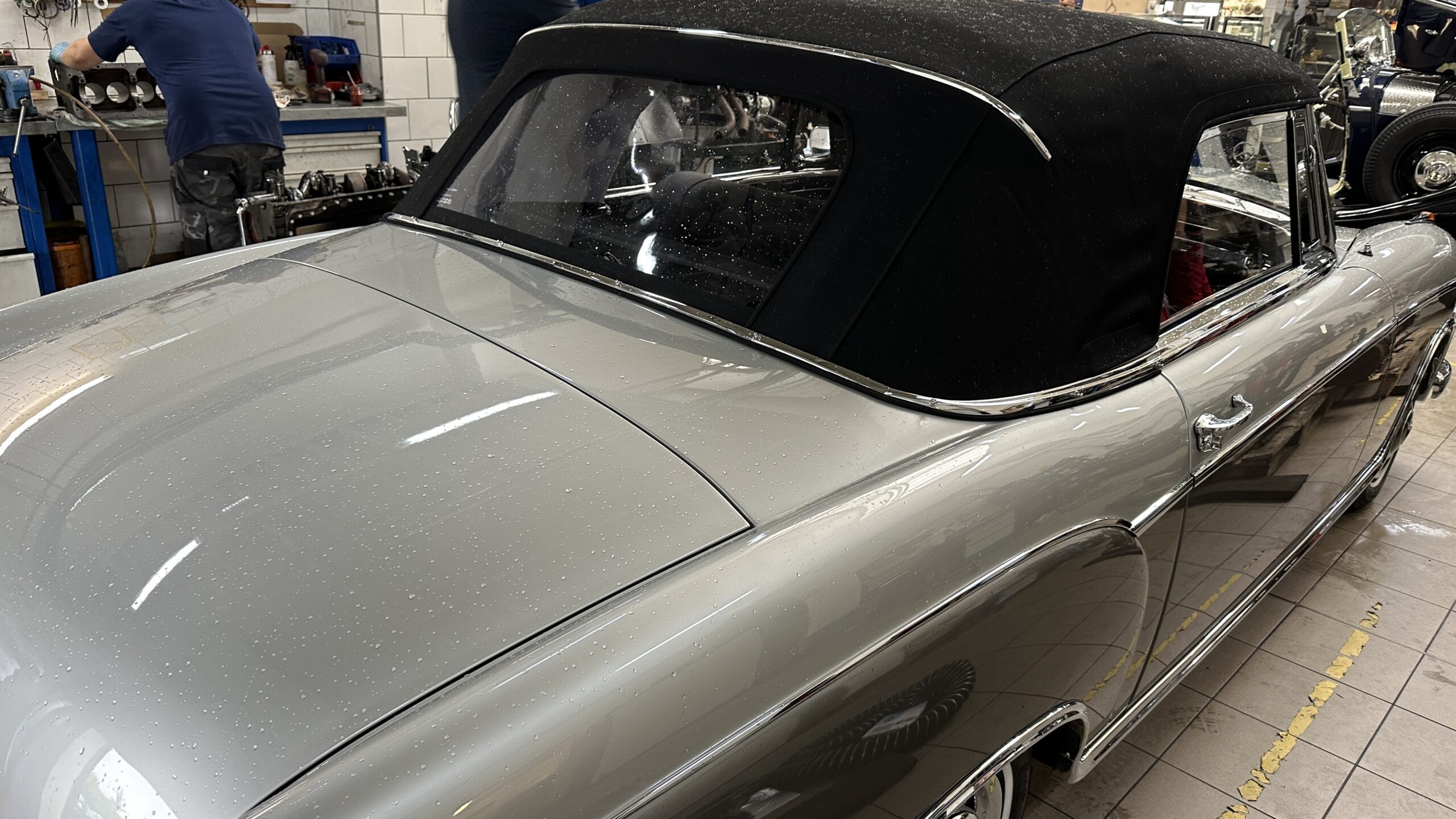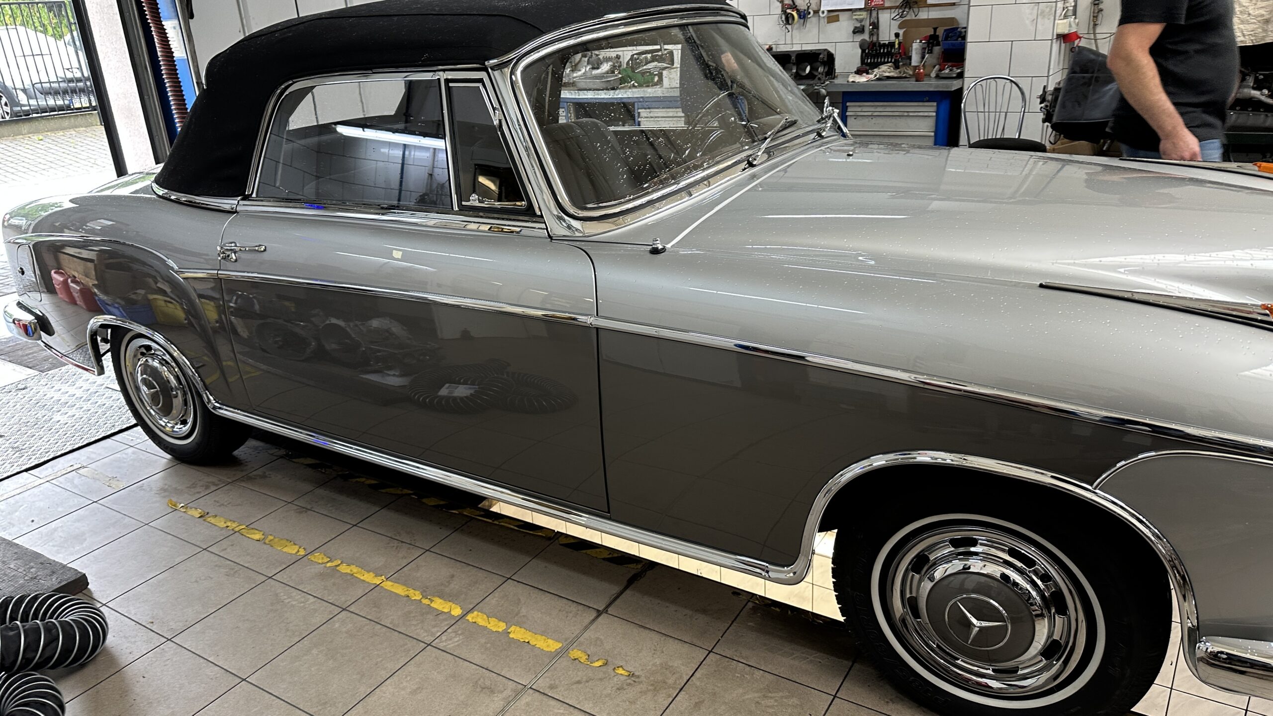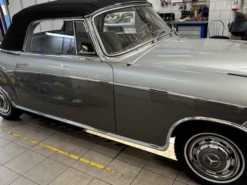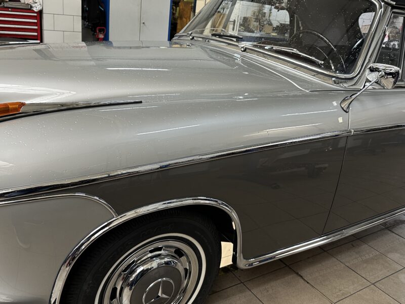 Sylwetka auta jest ciekawym świadectwem „ery przejściowej” w motoryzacji. Odchodziły „rozczłonkowane” karoserie przedwojenne, zbliżała się era „trzech pudełek”. Mercedes był w kłopocie, ponieważ znaczną część klientów stanowiły osoby starsze, o konserwatywnych upodobaniach. Niektóre z nich utyskiwały, że nowy model bez dachu ma błotniki włączone w karoserię! Jego poprzednik, kabriolet 220 (W 187) z lat 1951-55 miał jeszcze bufiaste, osobno stojące osłony kół. Nawiasem dodam, że pod jego tradycyjną karoserią był zamontowany zupełnie nowy, górnozaworowy silnik, którego unowocześniony wariant ma 220 SE.