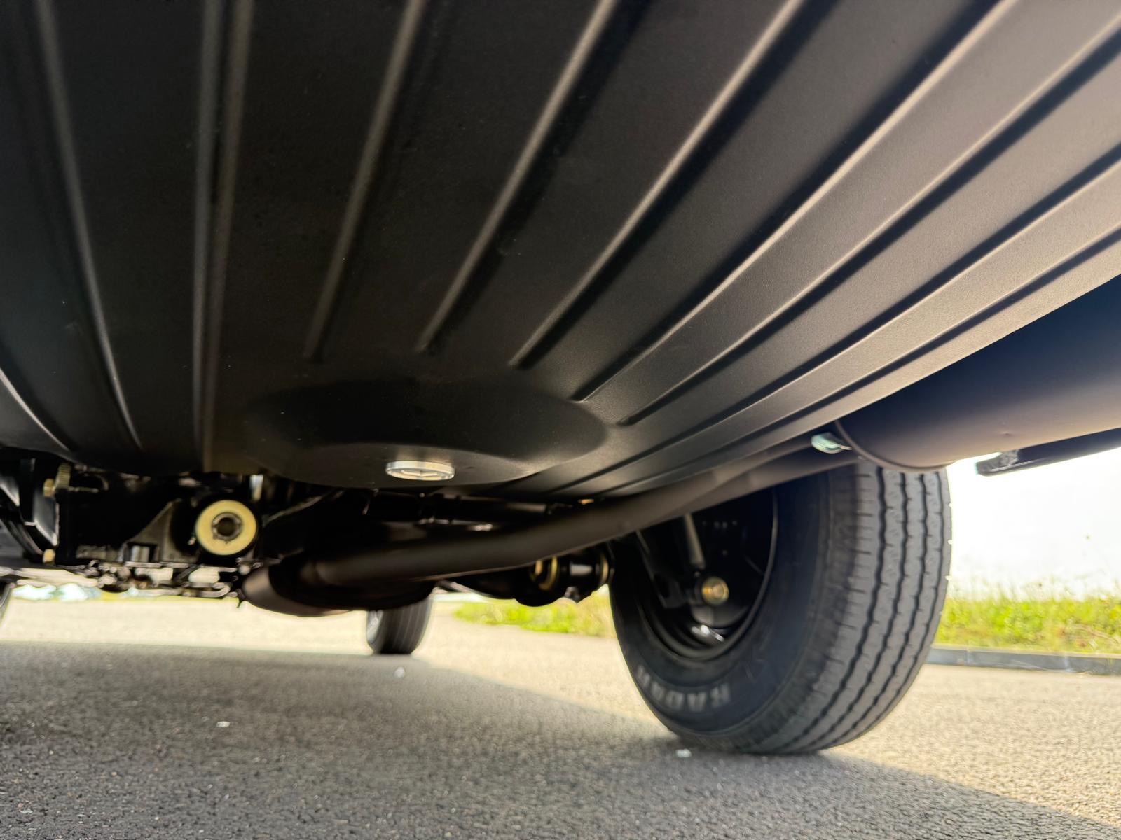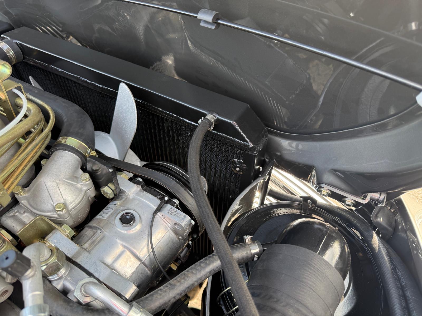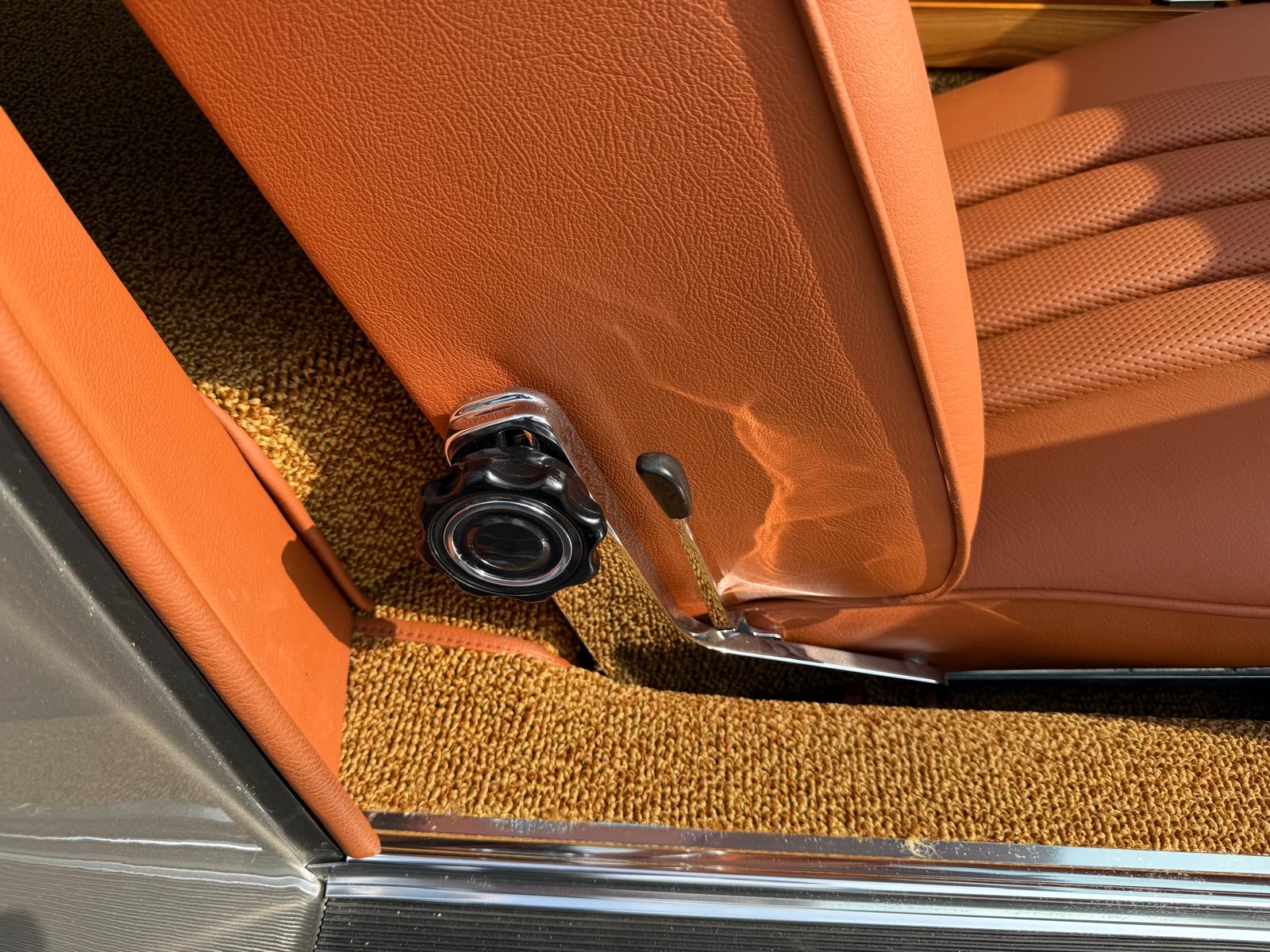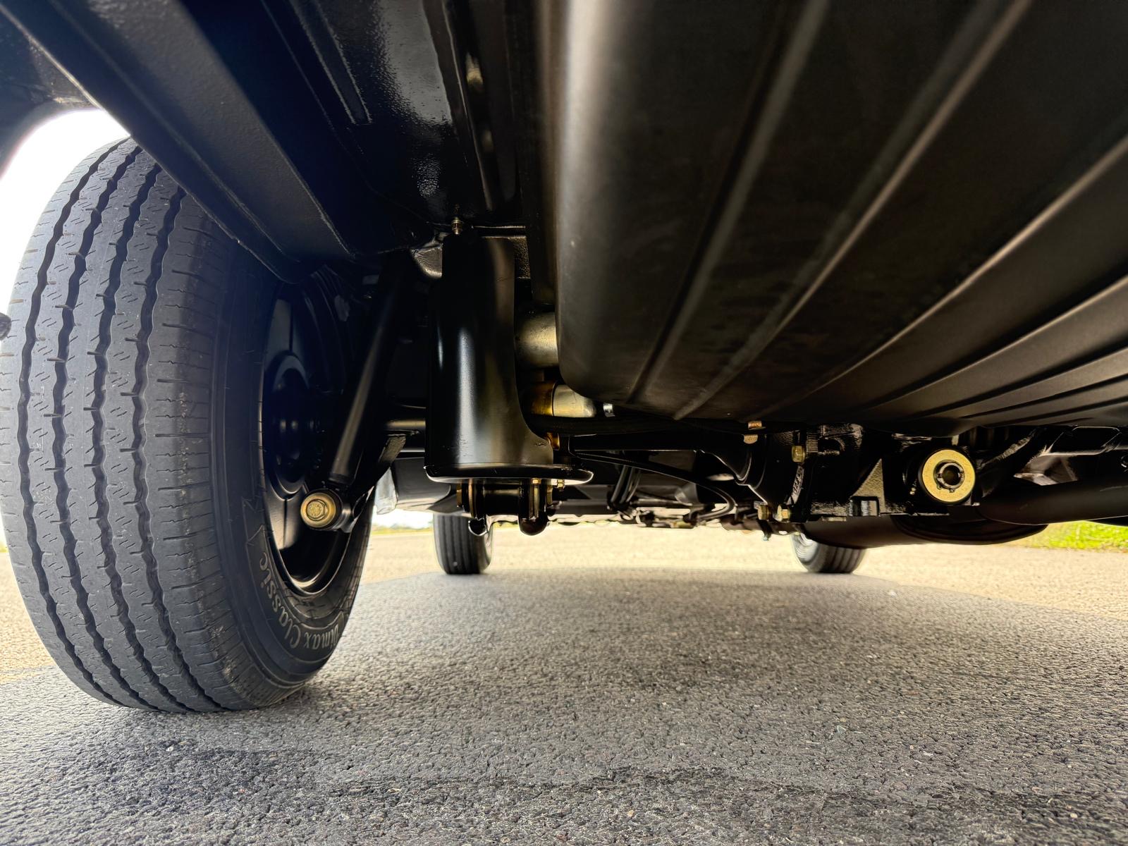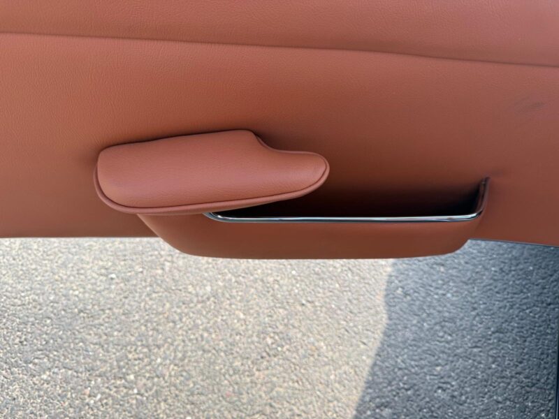 Rozebrany na goły metal, został całkowicie odbudowany i odnowiony w promiennej metalicznej farbie. Wnętrze tapicerowane jest w bogatej skórze , idealnie dopasowanej do miękkiego blatu z tkaniny.