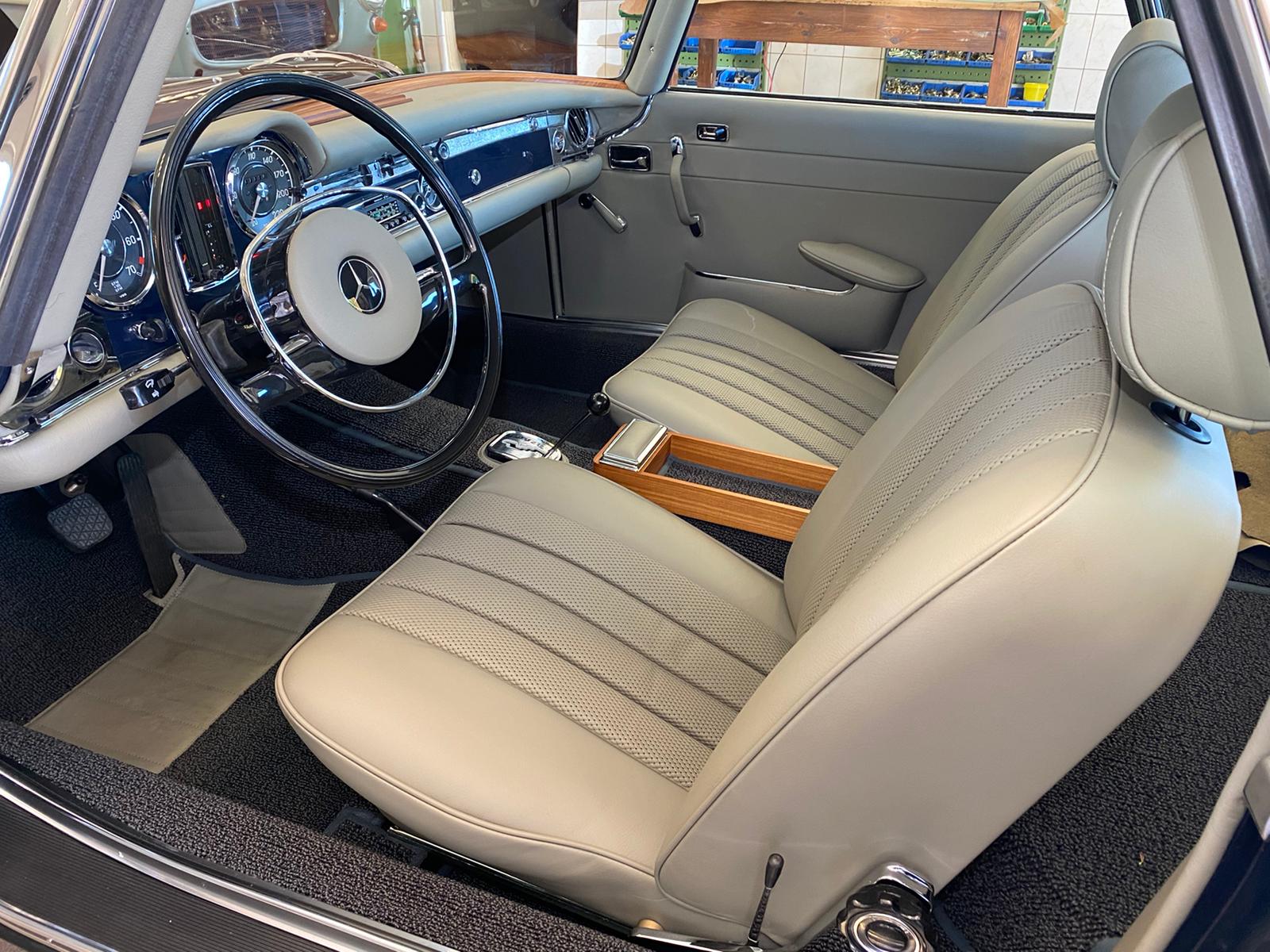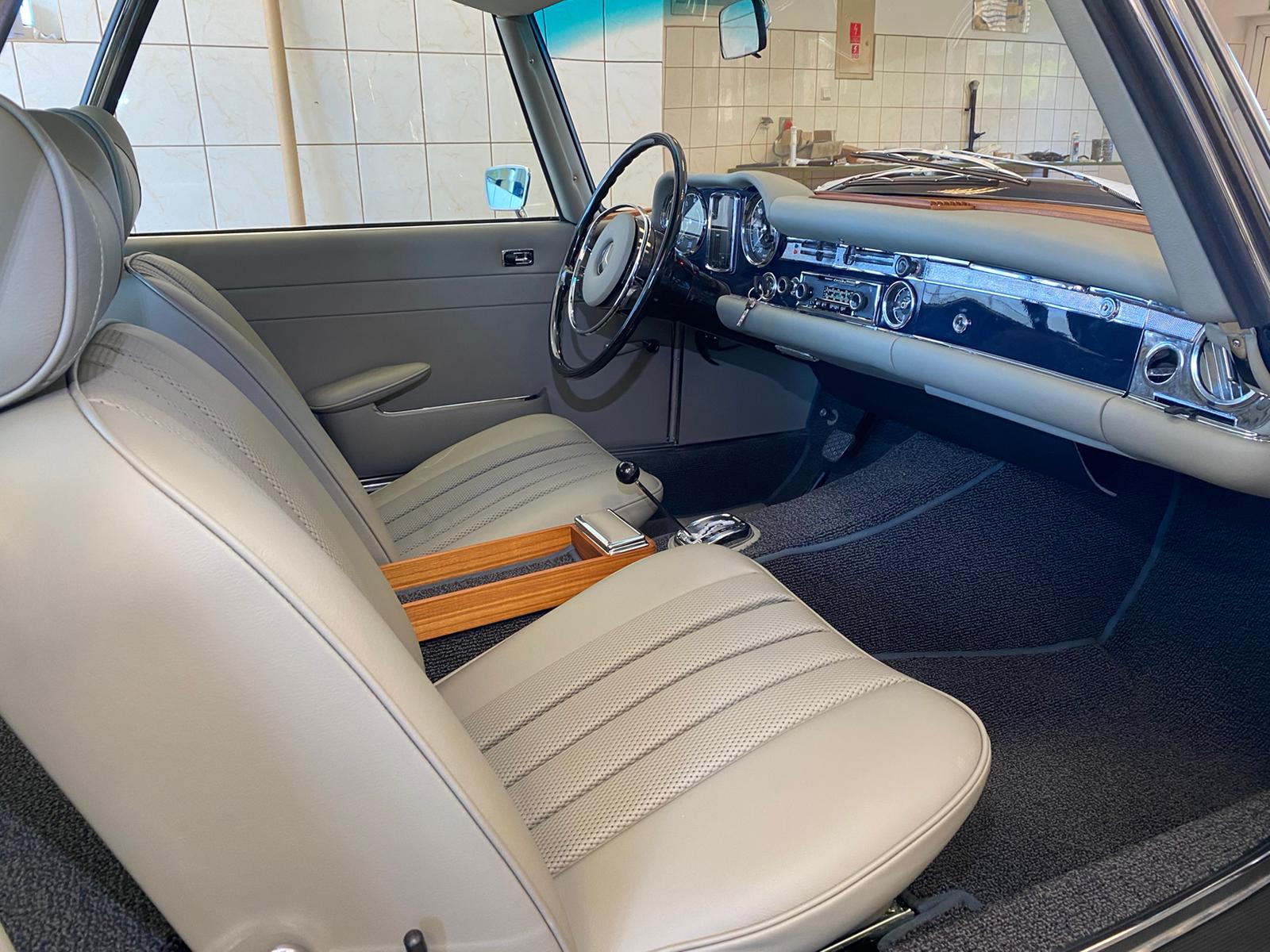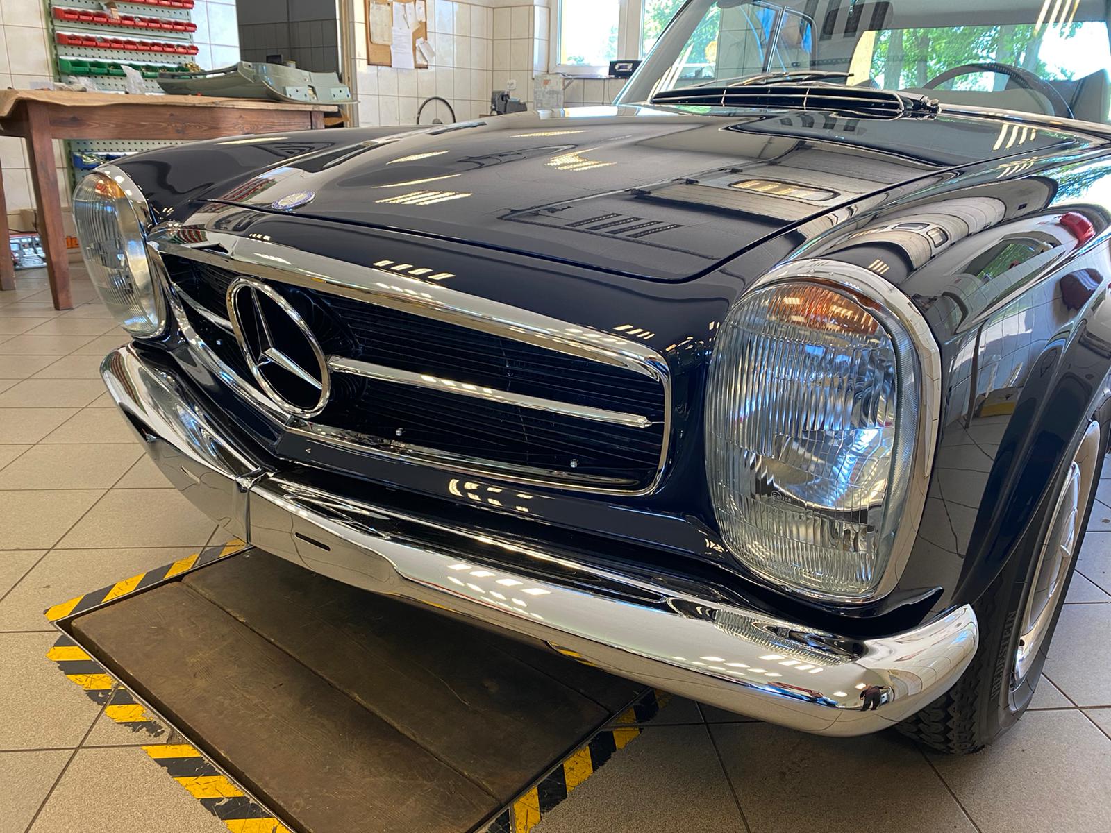 27 lutego 1967 roku zaprezentowano publiczności 250 SL, który miał zastąpić 230 SL po czterech latach produkcji. Nowość, która była seryjnie produkowana już w grudniu 1966 roku, miała taki sam wygląd zewnętrzny jak jego poprzednik. Podstawowe zmiany dotyczące silnika i hamulców, które w nieco zmodyfikowanej formie wyprowadzono z modelu 250 SE. Silnik, którego pojemność skokowa została zwiększona o 200 cm3 po wydłużeniu skoku tłoka, osiągnął to samo. wydajność przy 10% wyższym momencie obrotowym, a ponadto była wyposażona w siedem łożysk wałka rozrządu i chłodnicę oleju. Zmiany hamulców obejmowały hamulce tarczowe na tylnych kołach, większe szczęki hamulcowe z przodu oraz dodanie regulatora siły hamowania. Wbudowanie większego 82-litrowego zbiornika paliwa zamiast 65-litrowego zwiększyło zasięg samochodu. Oprócz trzech wersji 230 SL dostępna była opcjonalna czwarta wersja 250 SL – coupé z siedzeniami z tyłu, które zostało zaprezentowane po raz pierwszy w marcu 1967 roku na Salonie Samochodowym w Genewie. Dodatkowa przestrzeń, która stała się niezbędna do wbudowania tylnych siedzeń, stała się dostępna po usunięciu maski i komory maski roadstera. Ze względu na brak możliwości ponownego zamontowania maski, ta wersja miała być polecana tylko w miejscach o niewielkich opadach deszczu lub po zamknięciu maski coupé.