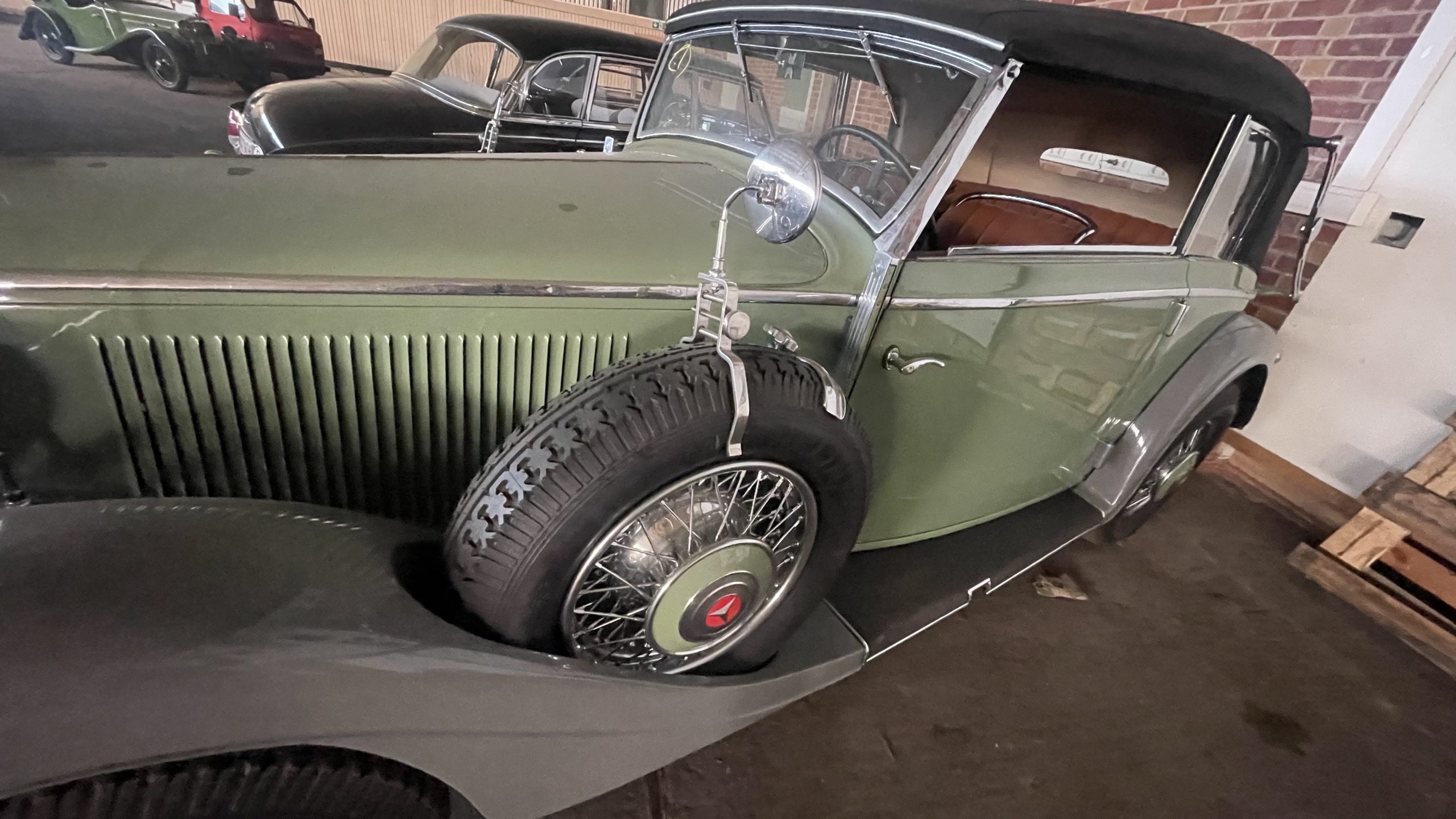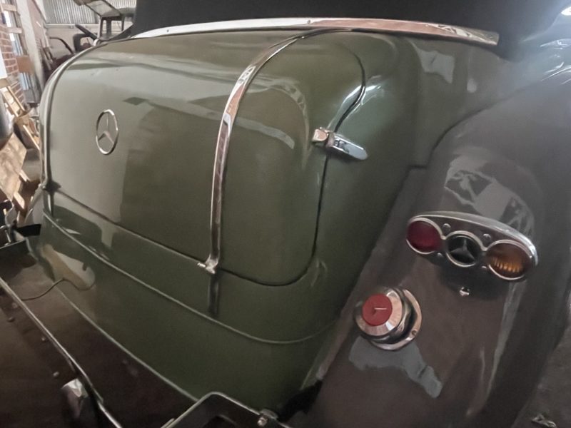 We wnętrzu zastosowano wysokiej jakości czerwoną skórzaną tapicerkę z dopasowaną wykładziną. Wszystkie elementy kabiny pasażerskiej, w tym piękny, nieodrestaurowany zestaw wskaźników, zegar i zapalniczka oraz atrakcyjna aluminiowa kierownica, wyglądają prawidłowo. Drewniana deska rozdzielcza i ramy okienne również zostały w wysokim stopniu wykończone. Komora silnika jest schludna, podobnie jak spód, który został kosmetycznie wykończony. Ten bardzo elegancki Mercedes-Benz 290 Cabriolet B to rzadziej spotykany samochód na dzisiejszym rynku samochodów klasycznych. Dzięki dłuższemu rozstawowi osi i okazałemu nadwoziu na świeżym powietrzu, zwiedzanie lub po prostu podziwianie będzie ekscytujące.