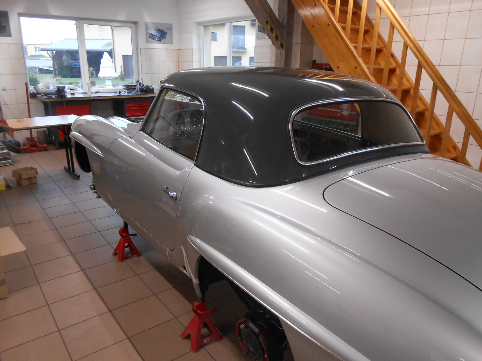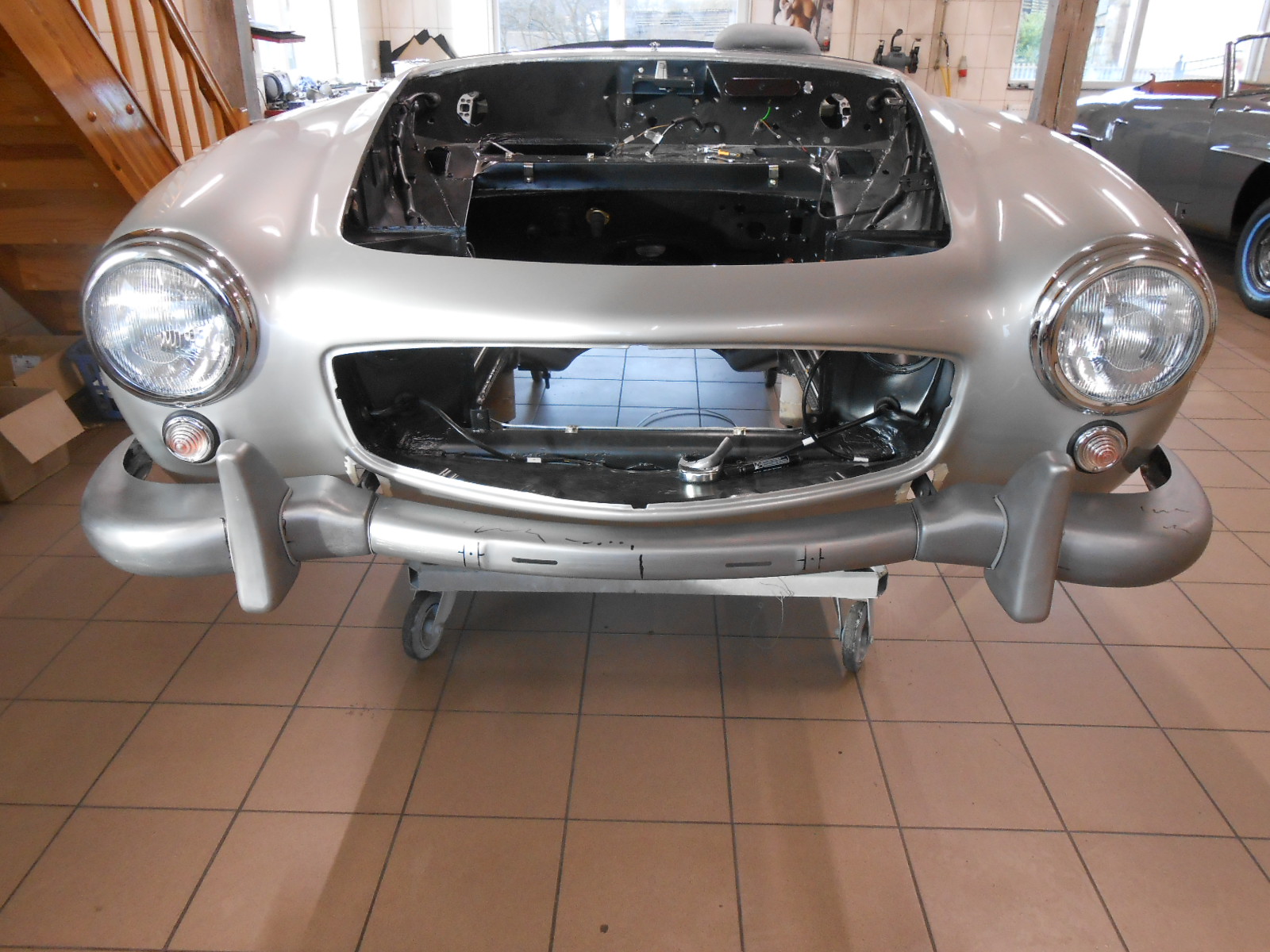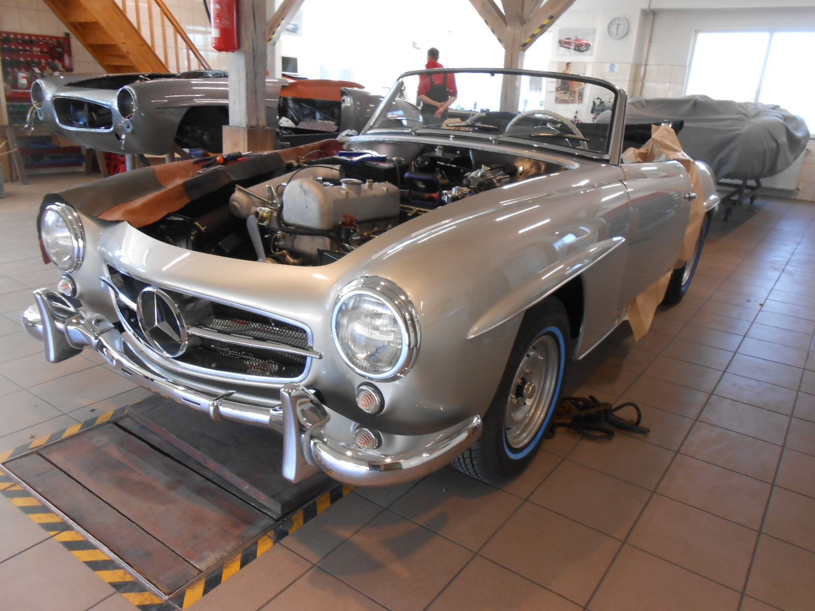 Do 300 SL nawiązywała szykowna stylizacja 190 SL, dzieło Karla Wilferta i Waltera Häckera. O ile jednak Gullwing bazował na skomplikowanej ramie przestrzennej, o tyle jego mniejszy brat korzystał ze skróconej płyty podłogowej limuzyny 180 (W 120) z samonośnym nadwoziem. Produkcja dwuosobowego roadstera ruszyła w maju 1955 roku. Do napędu auta posłużył nowo opracowany silnik M 121 z wałkiem rozrządu w głowicy. Z pojemności 1,9 litra generował on moc 77 kW (105 KM).